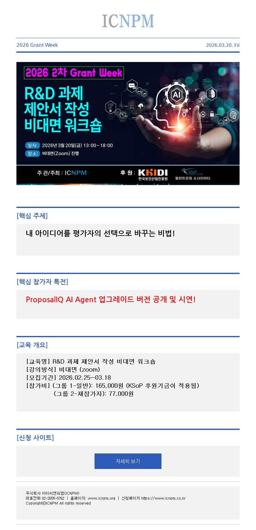 2026 2차 Grant Week: R&D 과제 제안서 작성 비대면 워크숍
